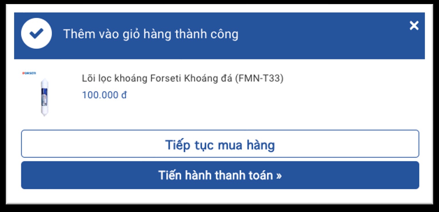 - Website sẽ hiện thị thông báo “Thêm vào giỏ hàng thành công”