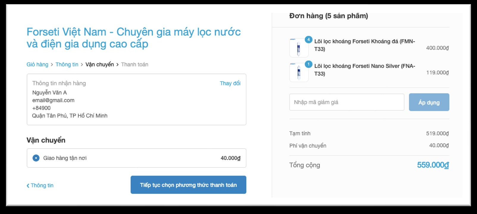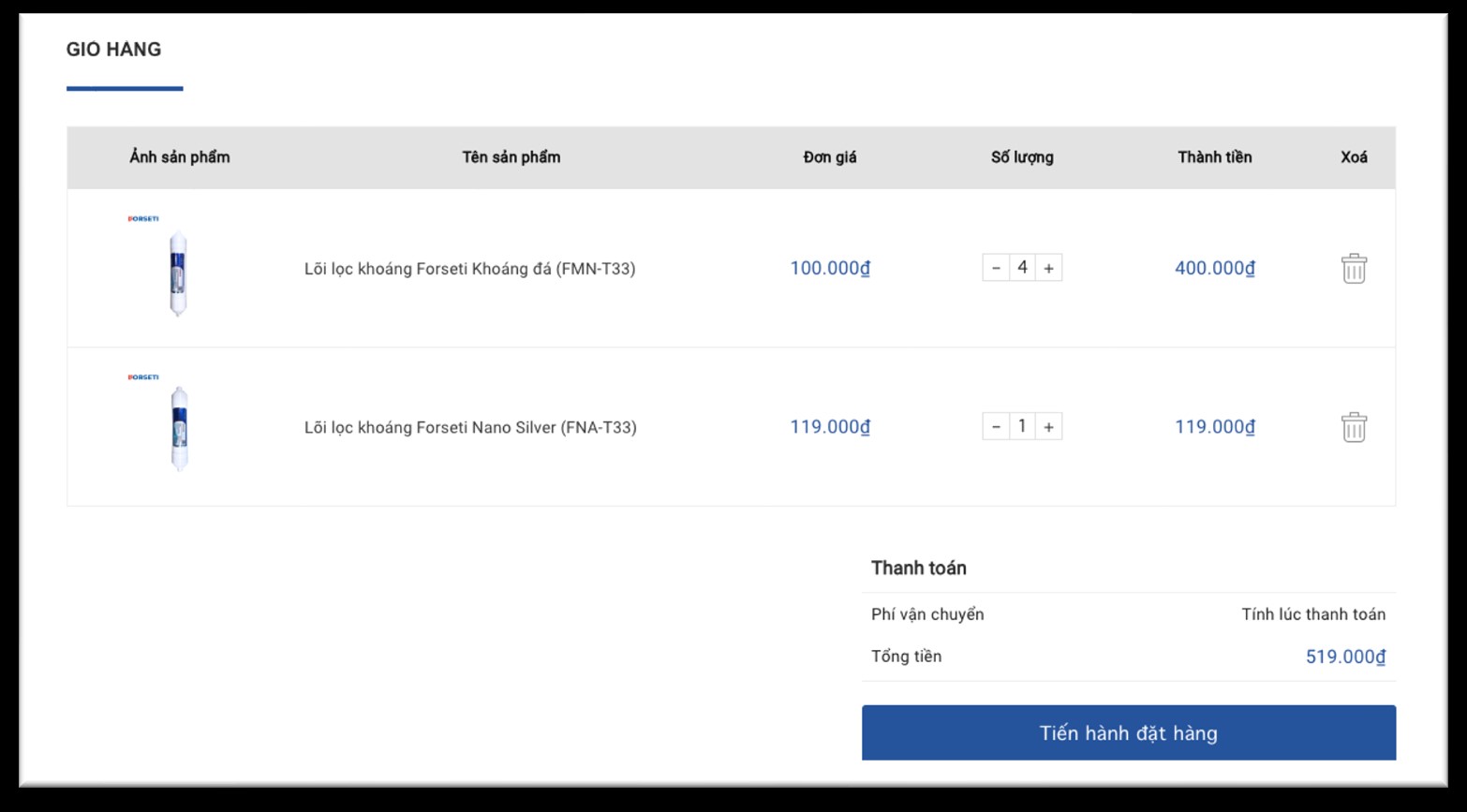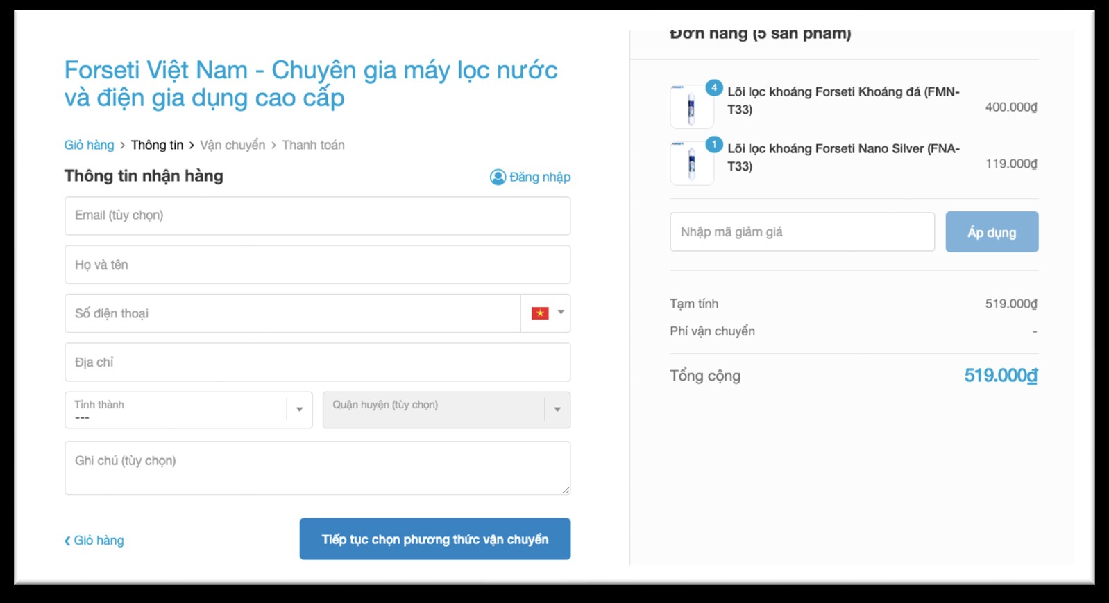 Bước 1: Quý khách hàng có thể truy cập vào https://forseti.vn/ và thực hiện các cách đặt hàng đơn giản sau: