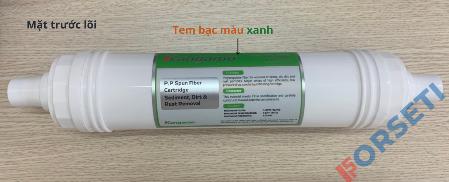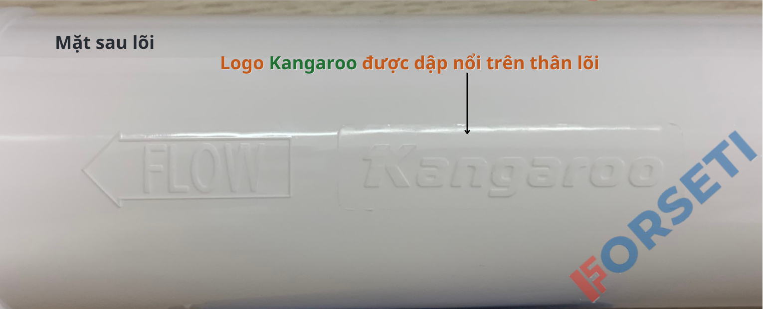 - Logo dập nổi: lõi lọc chính hãng Kangaroo sẽ có logo dập nổi trên nắp lõi