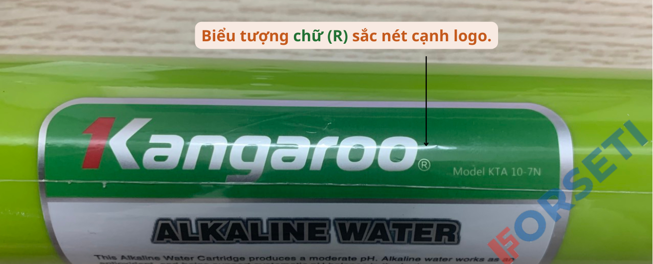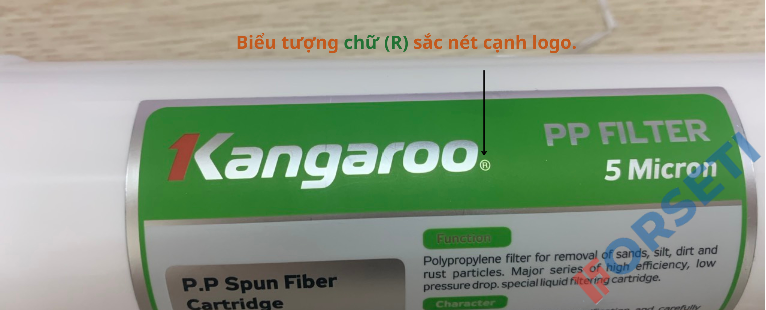 - Trên thân lõi lọc: có logo dập nổi trên thân lõi, chú ý có biểu tượng chữ (R) cạnh logo.