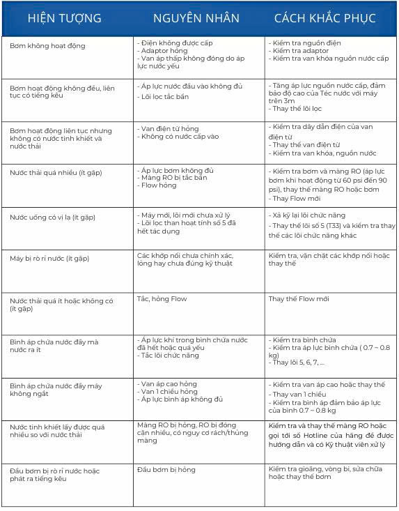 - Thay thế định kỳ hệ thống lõi lọc theo khuyến cáo để đảm bảo chất lượng nước cũng như tăng tuổi thọ sản phẩm.